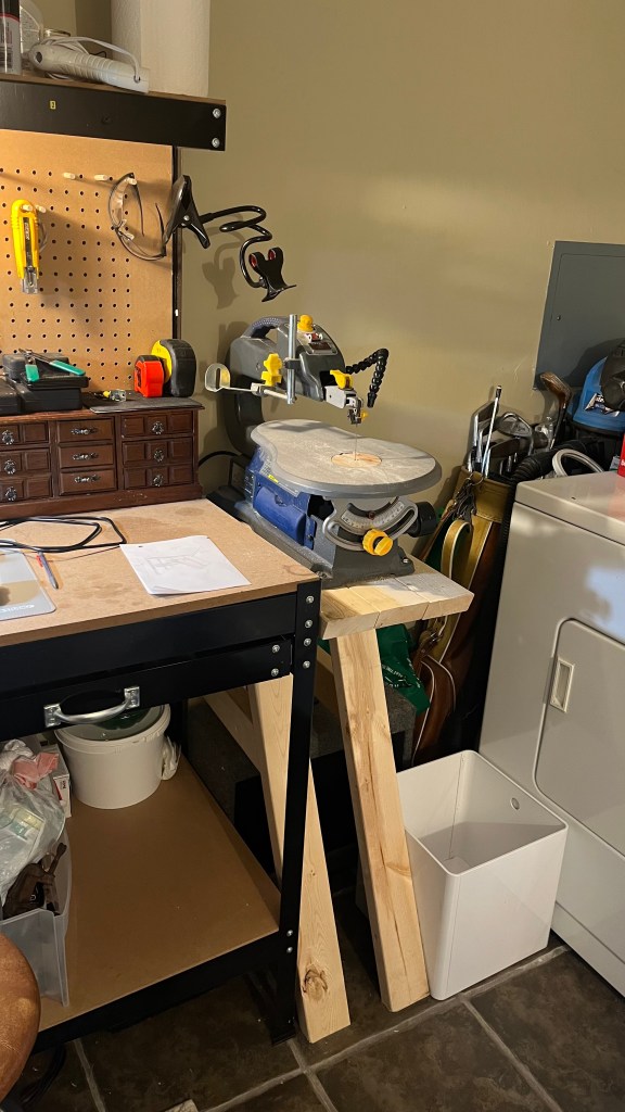 The issue is, my “shop” space is limited as it is, and my bench real estate is at an even greater premium. Add to this that the cam of my scroll saw broke years ago, and my DIY results in more vibrations than would generally be considered ideal.
